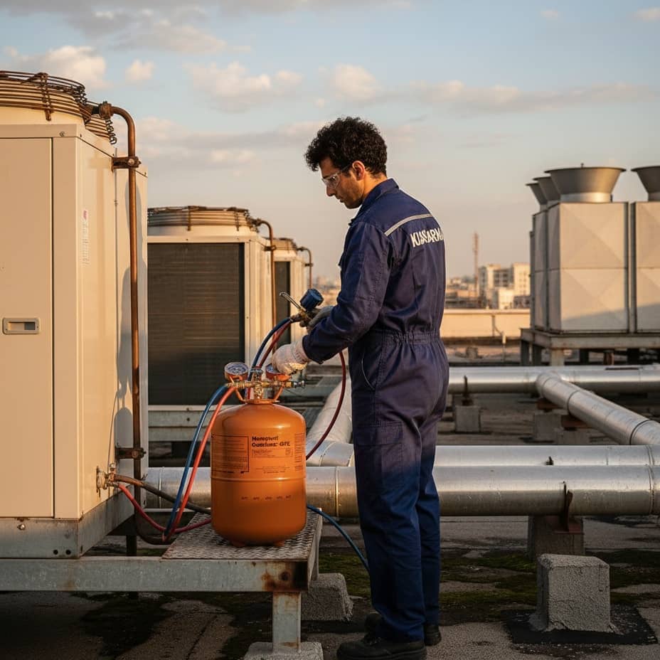 گاز R-407C یک مبرد ترکیبی (HFC) است که به عنوان جایگزین گاز R-22 در سیستم های تهویه مطبوع و پمپ های حرارتی استفاده میشود. این گاز برخلاف R-22، آسیبی به لایه اوزون نمیرساند، اما همچنان پتانسیل گرمایش جهانی (GWP) نسبتاً بالایی دارد. R-407C به دلیل تطابق خوب با برخی سیستمهای قدیمی R-22 (با تغییرات جزئی) و عملکرد مناسب در دماهای متعادل، در کولرهای گازی، چیلرها و برخی سیستمهای تجاری کاربرد دارد.