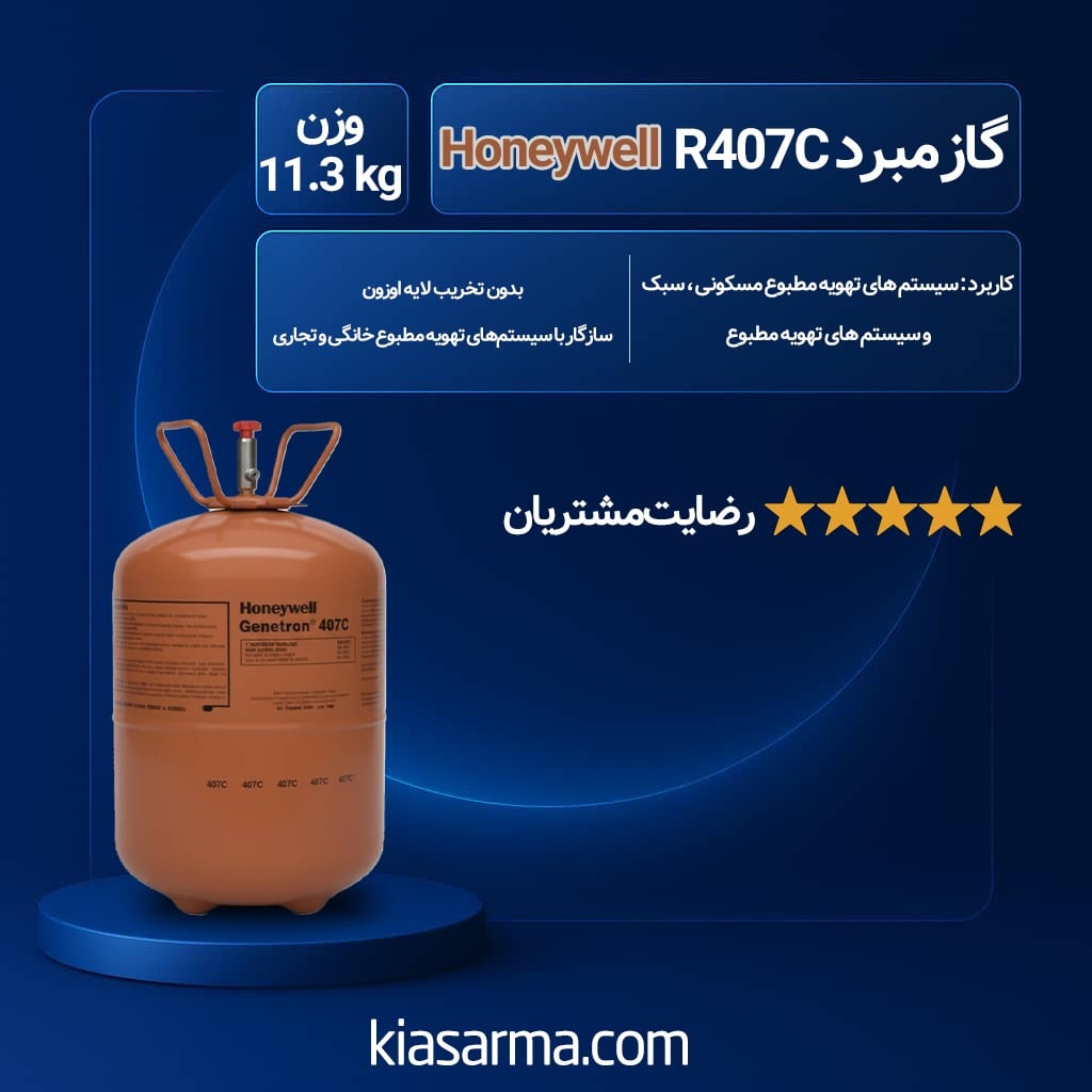 گاز R407C هانیول Honeywell ترکیبی از HFC است که برای داشتن خواص مشابه R22 در سیستم های تهویه مطبوع طراحی شده است. R407C برای سیستم های تهویه مطبوع مسکونی ، سبک و سیستم های تهویه مطبوع مستقیم مناسب است. گاز R407C Honeywell مخلوطی از گاز های مبرد فریونی R32، R125 و R134a میباشد که مشخصات بسیار مشابه ای نسبت به گاز R22 در تجهیزات تهویه مطبوع دارد. گاز مبرد فریونی R407C در پروژه جایگزینی تجهیزات تهویه مطبوع، بیشترین تشابه را در مقایسه سایر مخلوط های گازی نسبت به گاز R22 دارا می باشد.