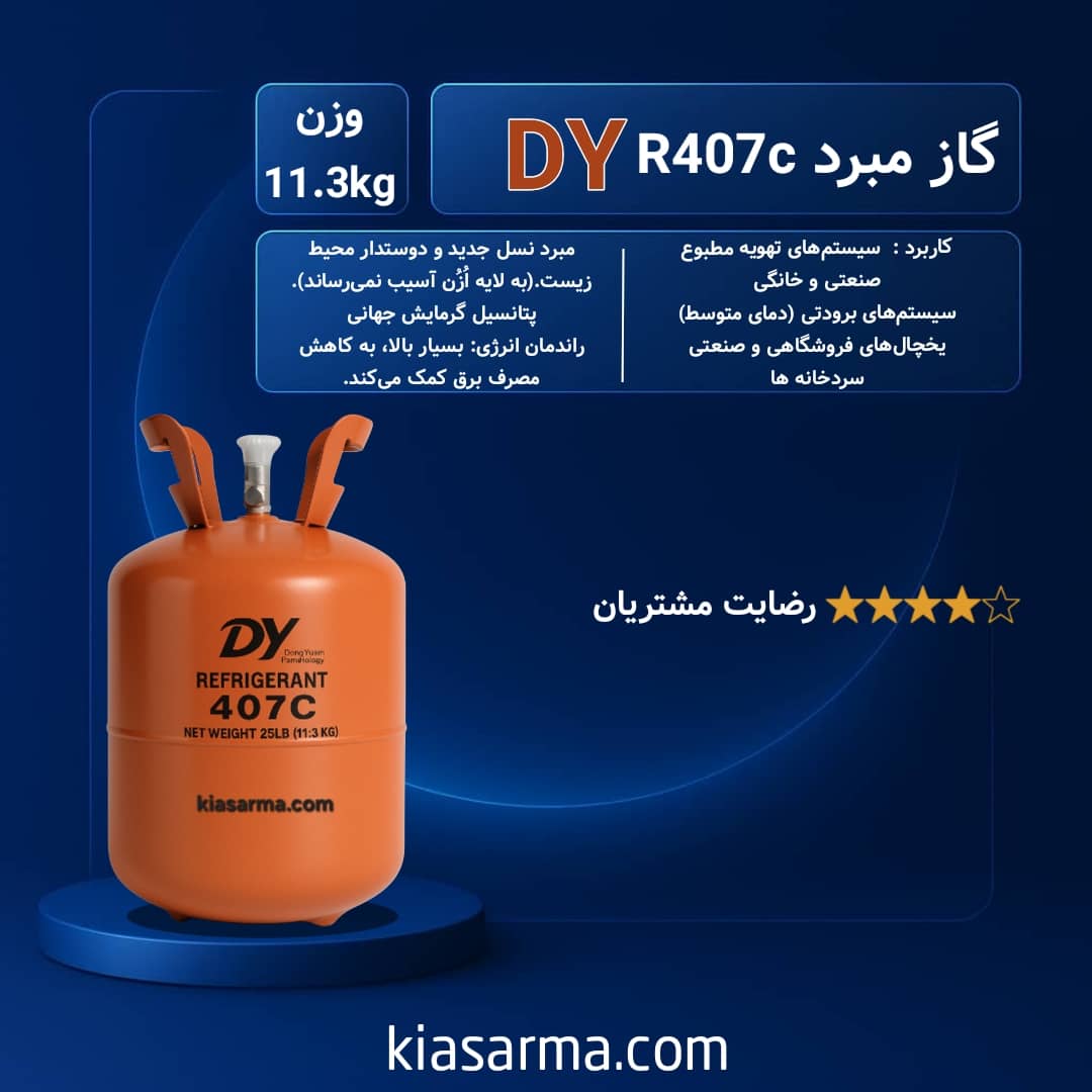 گاز R-407C یک مبرد ترکیبی (HFC) است که به عنوان جایگزین گاز R-22 در سیستم های تهویه مطبوع و پمپ های حرارتی استفاده میشود. این گاز برخلاف R-22، آسیبی به لایه اوزون نمیرساند، اما همچنان پتانسیل گرمایش جهانی (GWP) نسبتاً بالایی دارد. R-407C به دلیل تطابق خوب با برخی سیستمهای قدیمی R-22 (با تغییرات جزئی) و عملکرد مناسب در دماهای متعادل، در کولرهای گازی، چیلرها و برخی سیستمهای تجاری کاربرد دارد.