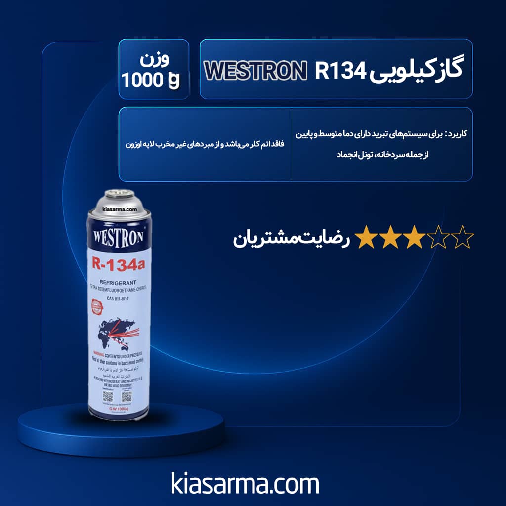 گاز 1 کیلویی R134a وسترون یا “تترافلورواتان” که از دستهی (HFC) میباشد، فاقد اتم کلر میباشد و از مبردهای غیر مخرب لایه اوزون نیز است.